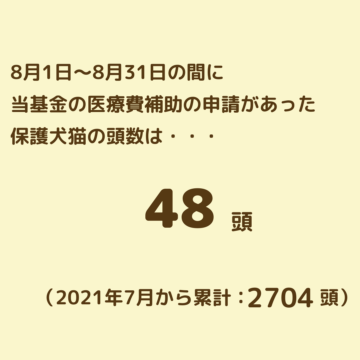 2025年8月1日~8月31日までに、医療費補助の申請のあった保護犬猫の頭数は、48頭でした。